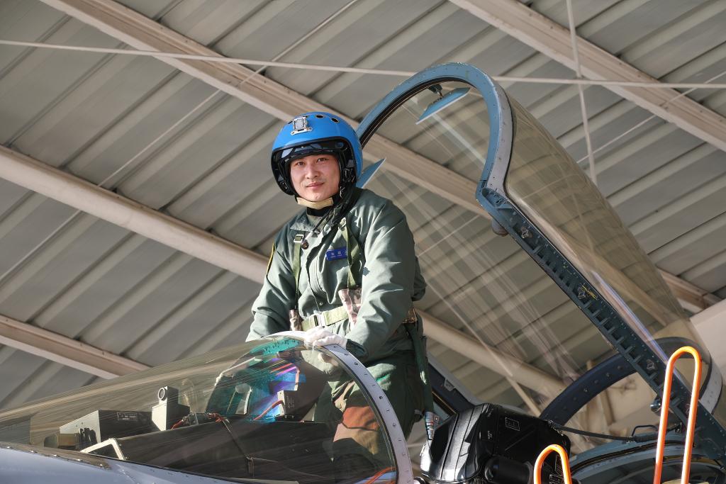 张超的女儿张上明珠手举父亲送给她的战机模型。