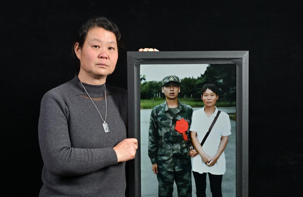 肖思远的母亲刘利霞手扶与儿子的合影。