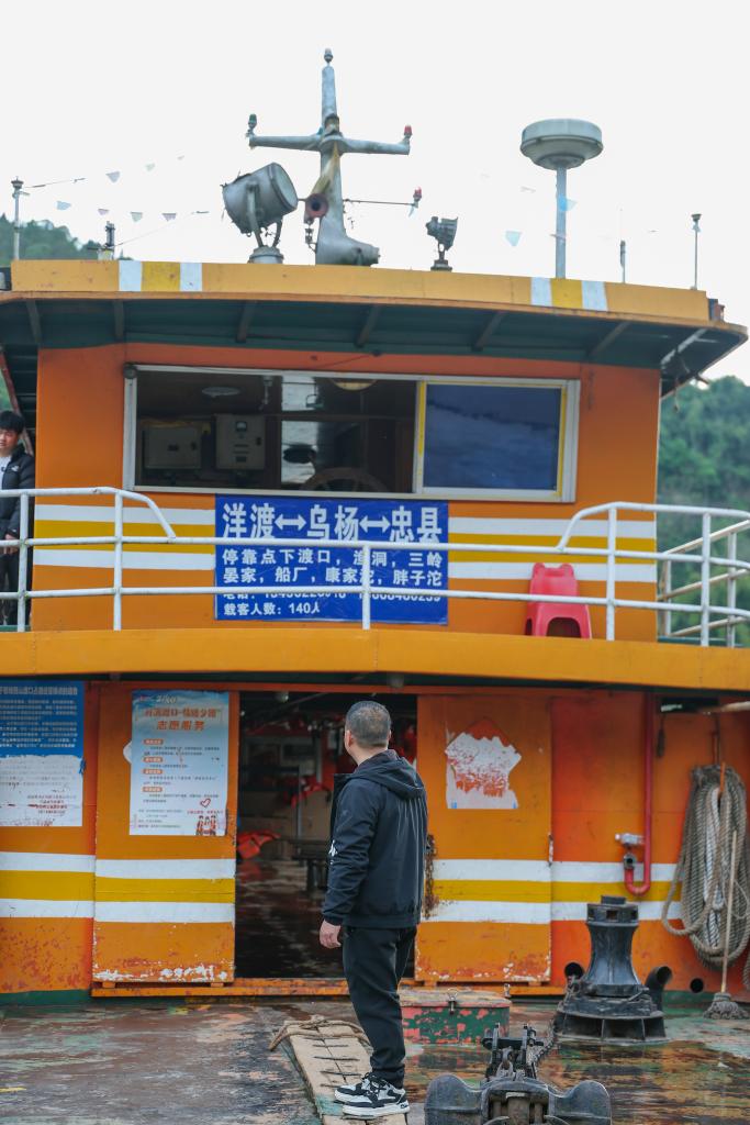 3月30日,秦大益在清扫完“渝忠客2180”客轮后回头望向“老伙计”。