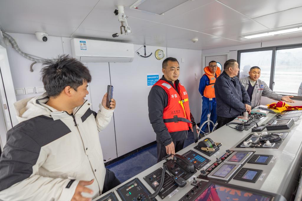 3月31日,秦源泽(左一)在“新渝忠客2180”客船上通过网络平台进行直播。