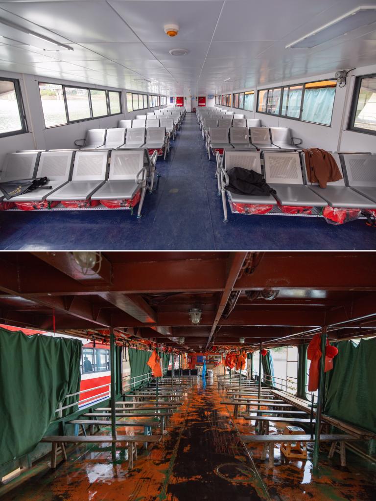 “新渝忠客2180”(上)和“渝忠客2180”客舱对比图。