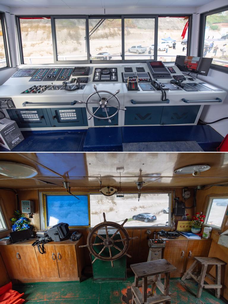 “新渝忠客2180”(上)和“渝忠客2180”驾驶舱对比图。