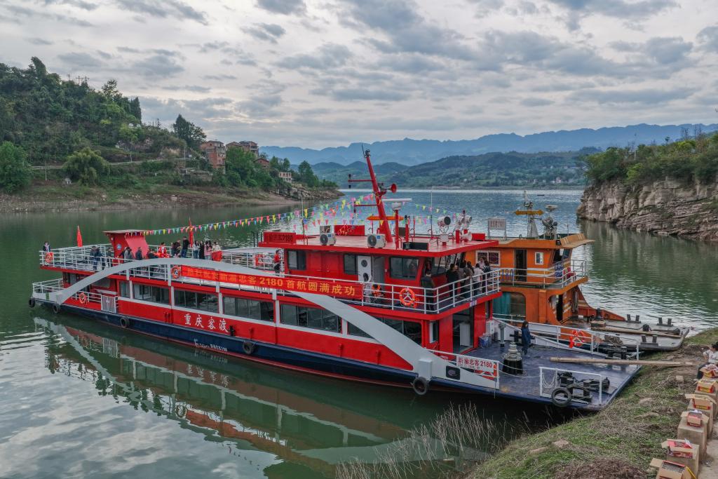 3月31日,“新渝忠客2180”客轮顺利抵达忠县县城西山码头(无人机照片)。