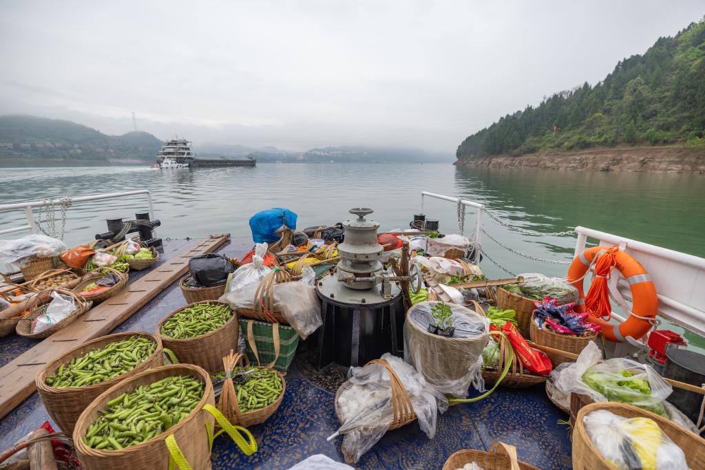 3月31日,菜农搭乘“新渝忠客2180”客轮前往忠县县城。