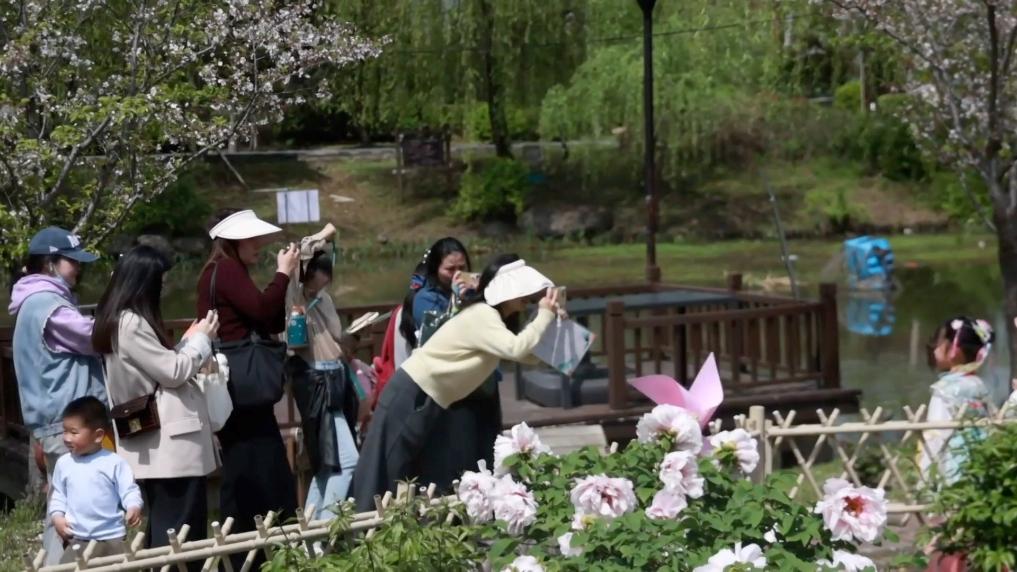 在浙江杭州余杭区仁和街道,一年一度的普宁村牡丹花会如期而至,吸引众多市民游客。