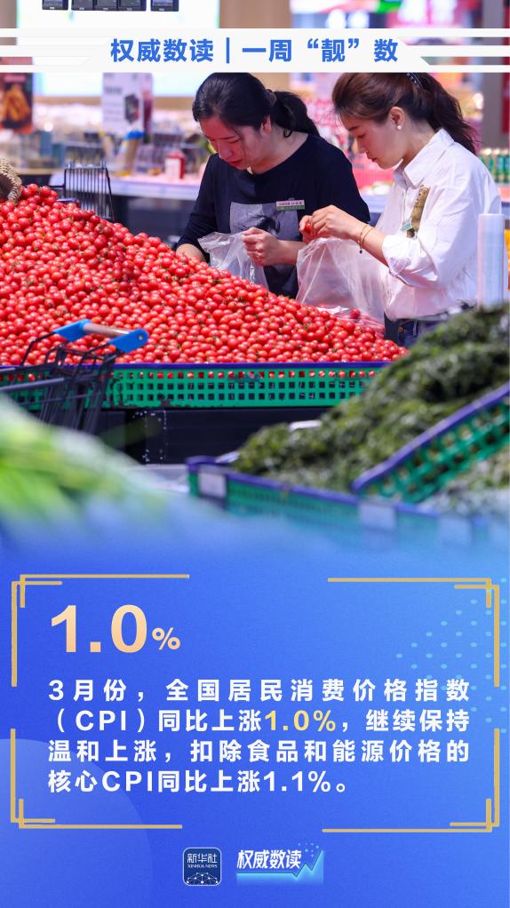 3月份,我国CPI同比上涨1.0%;今年清明假期,全社会跨区域人员流动量为84269.5万人次,国内出游总花费613.67亿元;截至目前,我国国家高新区总数达179家……本周,这些数据最值得关注。