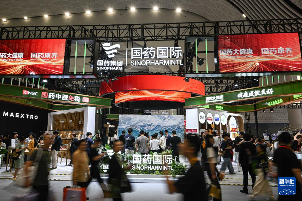 4月15日,在第六届消博会上,国药国际展台人头攒动。
