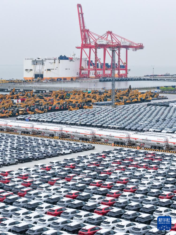 这是2026年3月20日在江苏太仓港汽车码头堆场里拍摄的准备运输出海的商品车(无人机照片)。新华社记者 李博 摄