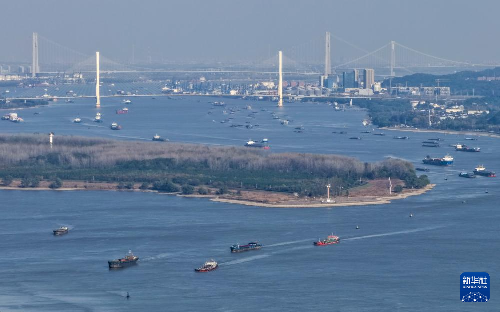 船只行驶在长江南京段(2025年11月18日摄,无人机照片)。新华社记者 李博 摄