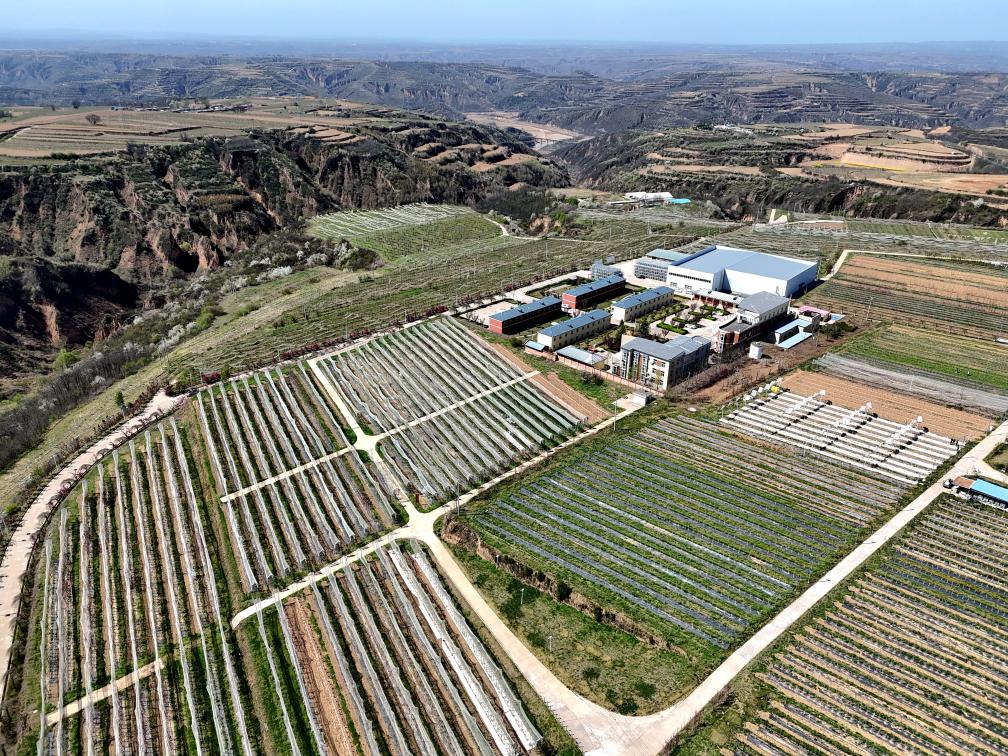4月10日拍摄的延安洛川苹果试验示范站科技小院(无人机照片)。新华社记者 李一博 摄