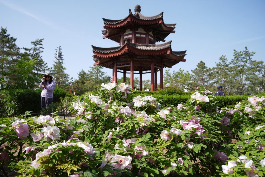 4月9日,游人在陕西西安大慈恩寺牡丹园内游览。新华社记者 邵瑞 摄