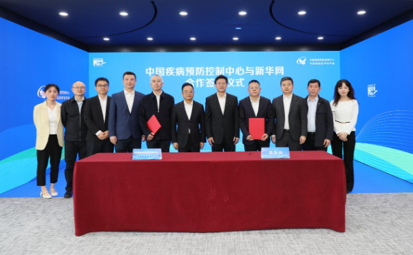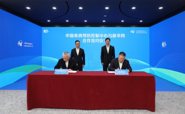 在中国疾控中心主任、党委副书记王健伟院士和新华网党委书记、董事长储学军共同见证下,中国疾控中心党委副书记周宇辉、新华网首席营销官徐明伟代表双方签字。