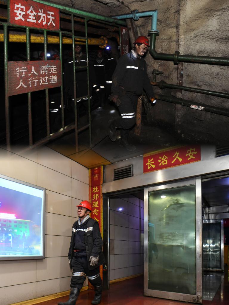 2026年4月21日,任世前走在入井通道内。新华社记者 曹阳 摄