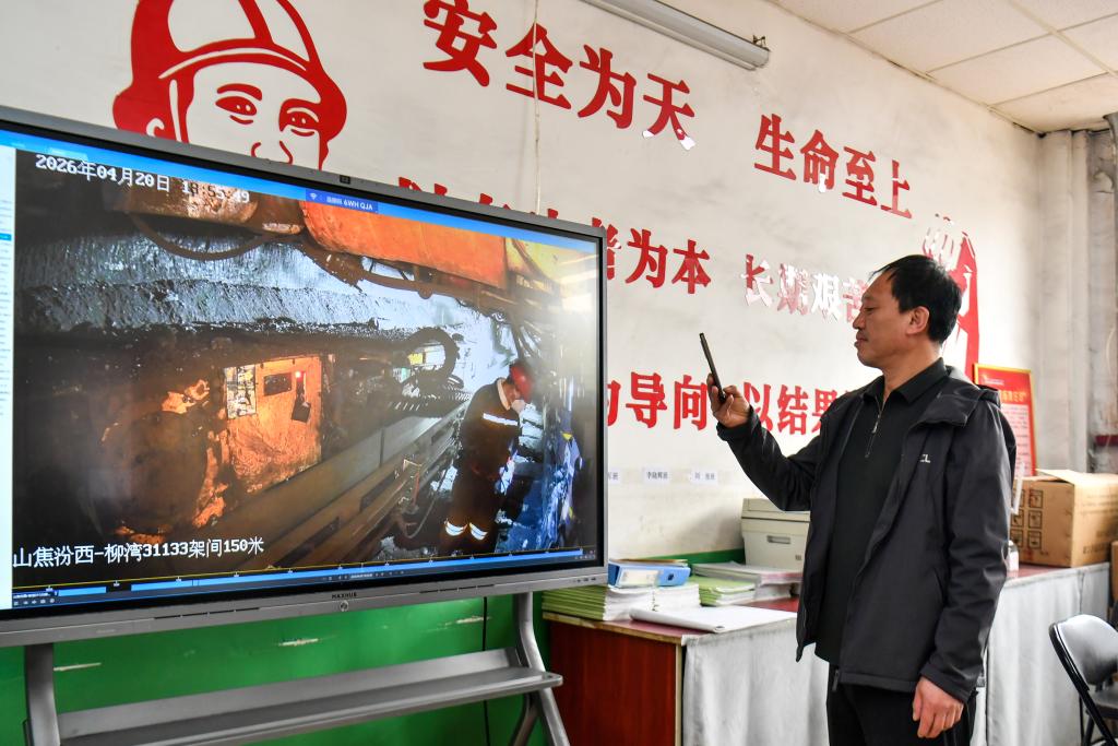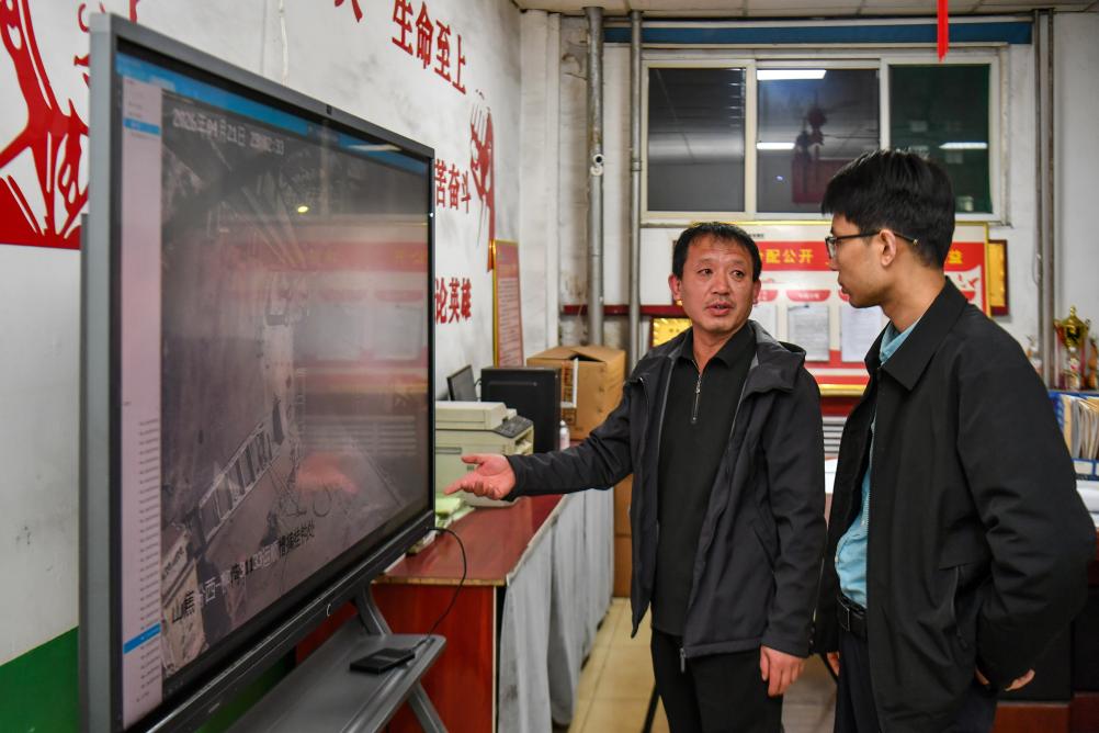 2026年4月21日,任世前在查看前一天井下监控的回放视频。新华社记者 曹阳 摄