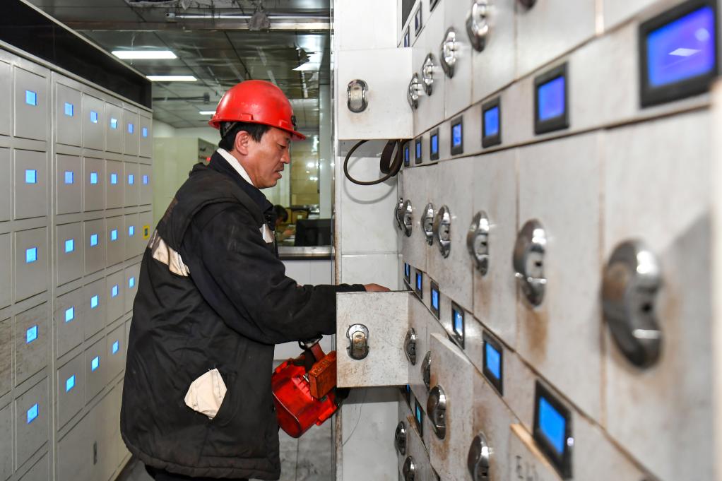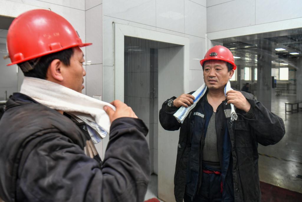2026年4月21日,任世前在拿矿灯。新华社记者 曹阳 摄
