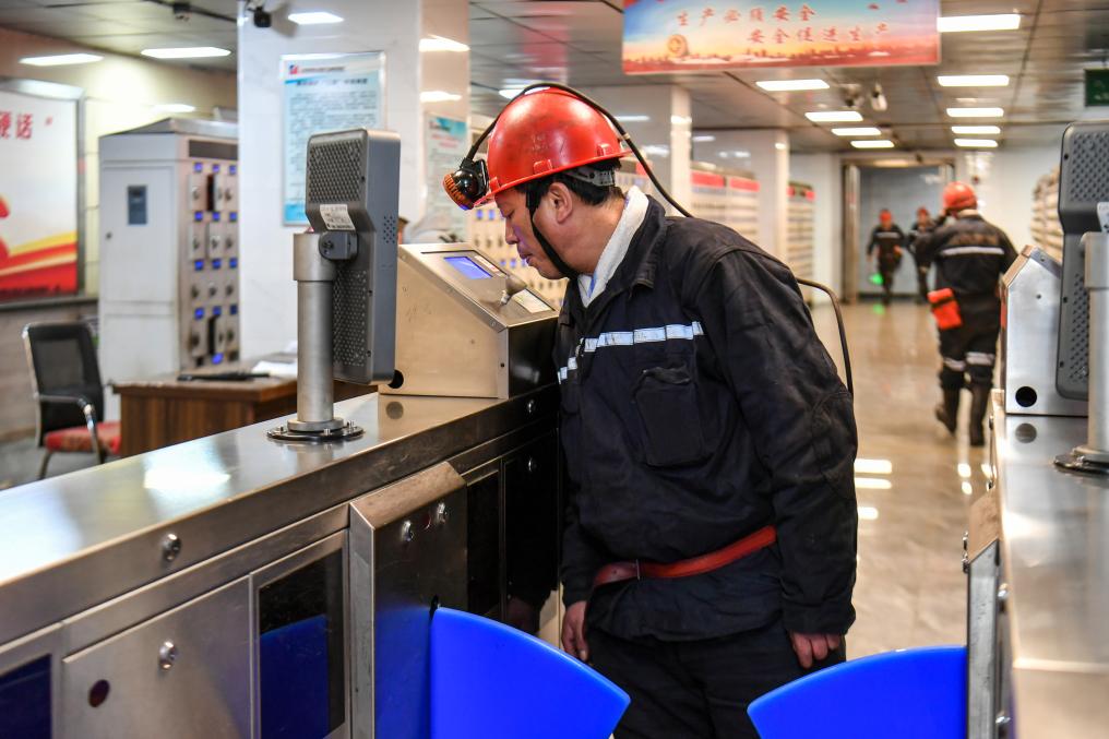 2026年4月21日,任世前在做进入矿井前的酒精检测。