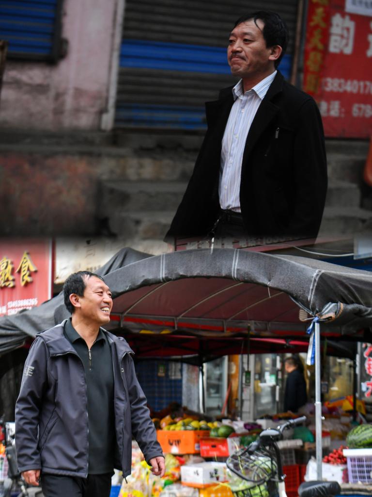 上图:2014年4月22日,任世前在上班路上(新华社记者 燕雁 摄);下图:2026年4月21日,任世前在上班路上(新华社记者 曹阳 摄)。