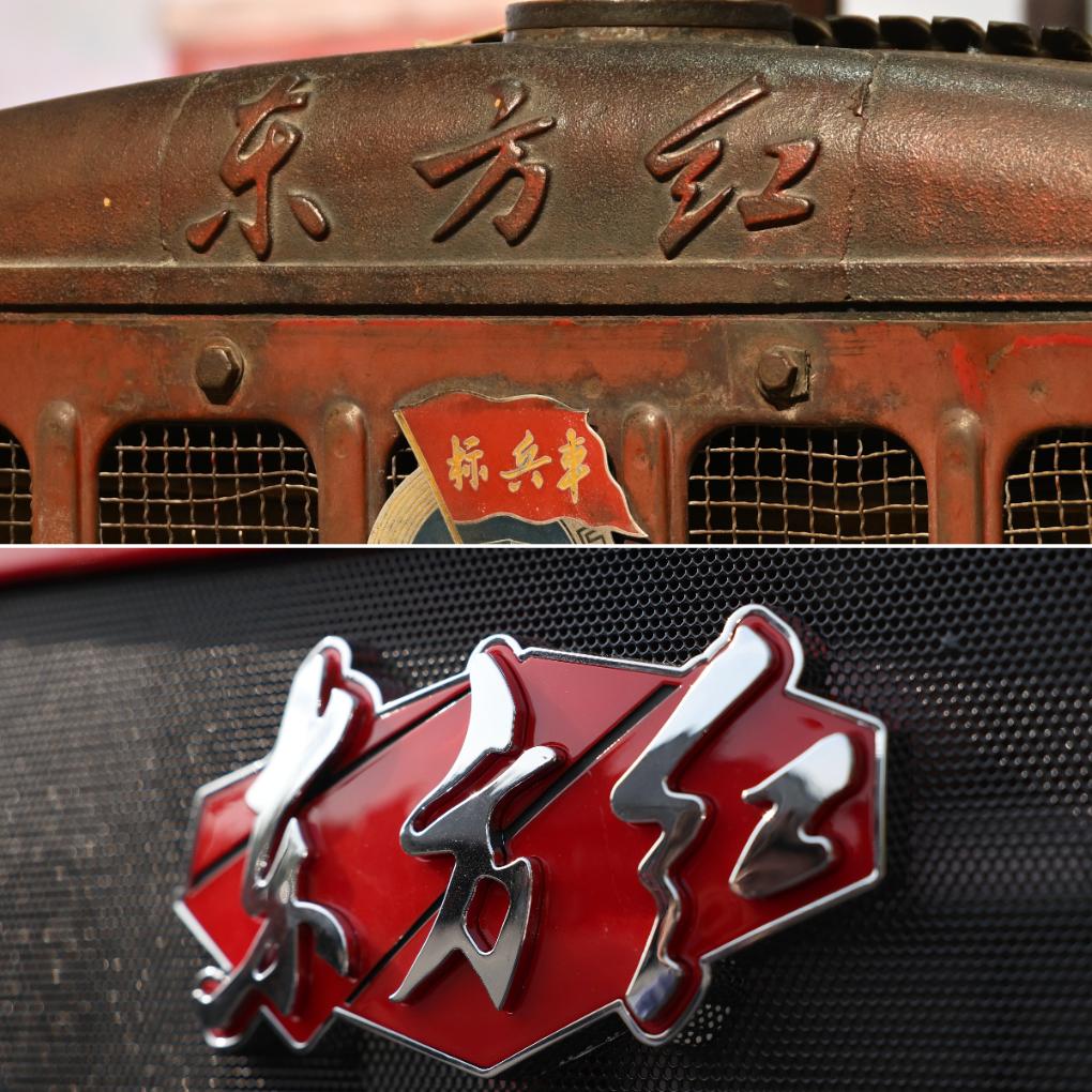拼版照片。上图为在中国一拖东方红农耕博物馆拍摄的东方红54履带拖拉机局部(2026年4月2日);下图为东方红大型轮式拖拉机局部(2026年4月14日)。新华社记者 李嘉南 摄