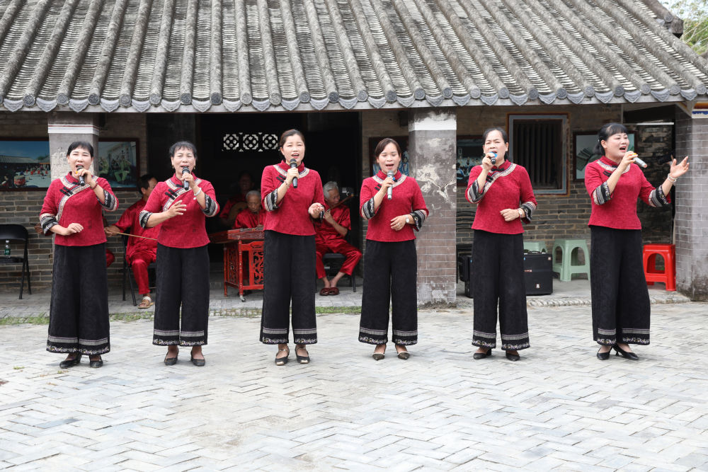 2026年4月25日,三亚市崖州区保平村村民为游客表演非遗项目“崖州民歌”。新华社记者 鲁鹏 摄