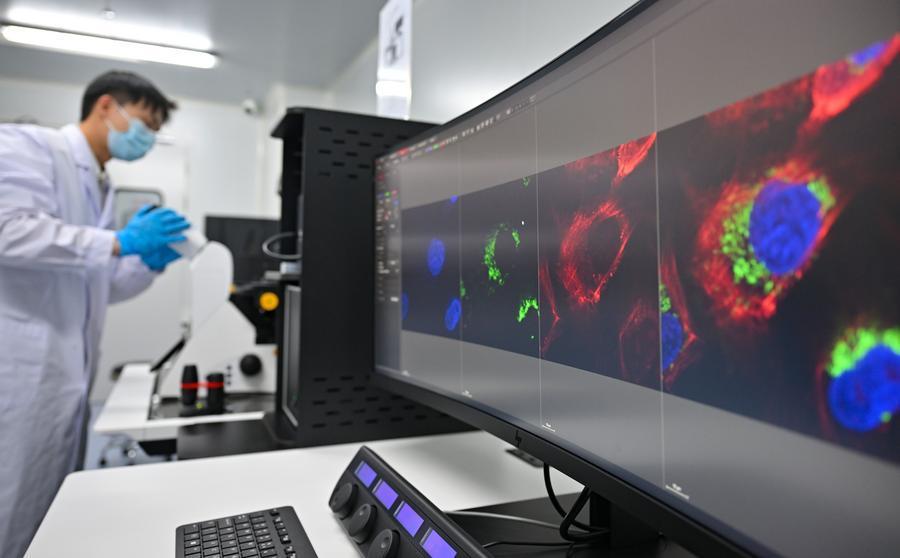 2025年8月27日,三亚崖州湾科技城月亮岛综合实验室的工作人员在操作激光共聚焦显微镜。新华社记者 郭程 摄