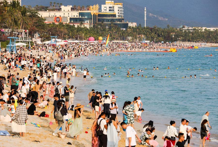 2026年2月20日,海南省三亚市大东海旅游度假区人头攒动。新华社发(叶龙斌摄)