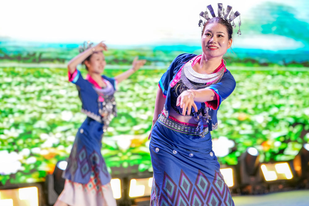 2026年4月28日,在第六届亚洲沙滩运动会运动员村内,身着民族服饰的演员在表演舞蹈。 新华社记者 马金瑞 摄