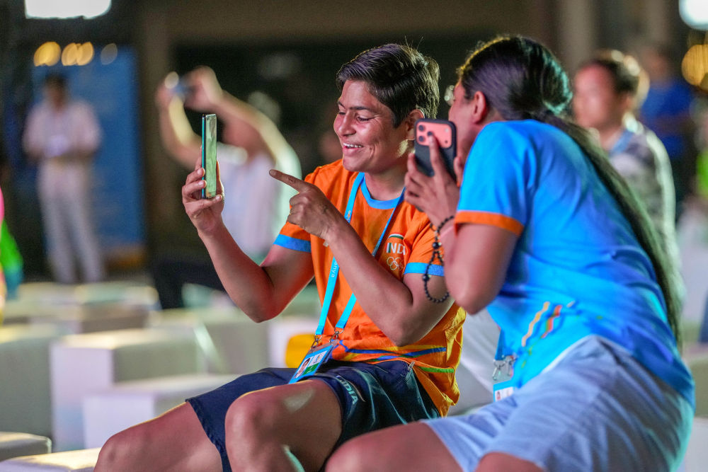 2026年4月28日,在第六届亚洲沙滩运动会运动员村内,运动员们观看演出。 新华社记者 马金瑞 摄