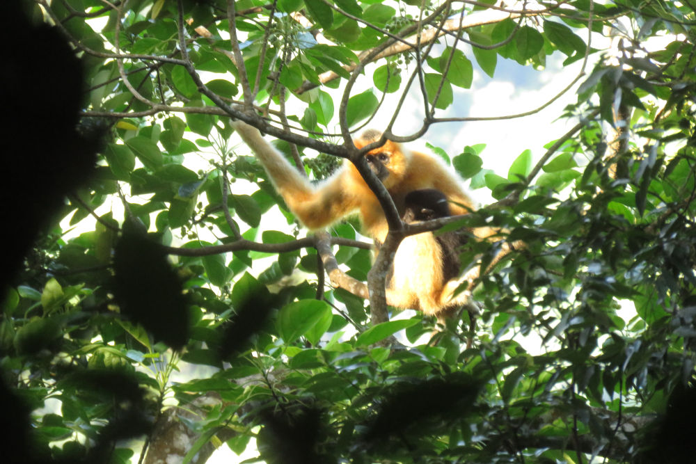 这是2022年在海南热带雨林国家公园霸王岭片区拍摄的海南长臂猿。海南长臂猿是国家一级保护野生动物,也是世界上最珍稀的灵长类动物之一,目前仅分布在海南热带雨林国家公园霸王岭片区内。随着海南热带雨林国家公园雨林生态环境持续改善,海南长臂猿种群数量已从70年代末的2群7到9只恢复到2023年的6群37只。新华社发(海南热带雨林国家公园管理局供图)