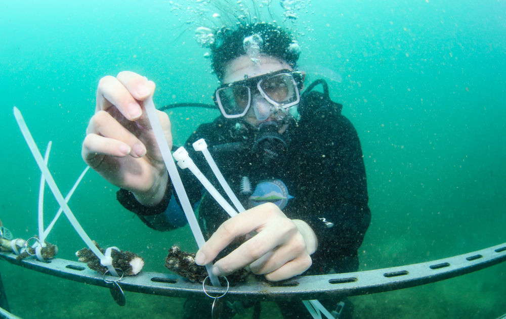 2024年6月8日,潜水员在海南陵水分界洲岛海域移植珊瑚。新华社记者 杨冠宇 摄