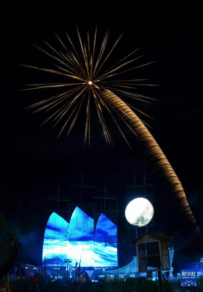 10月20日在广西北海市合浦县海丝首港景区拍摄的烟花秀。
