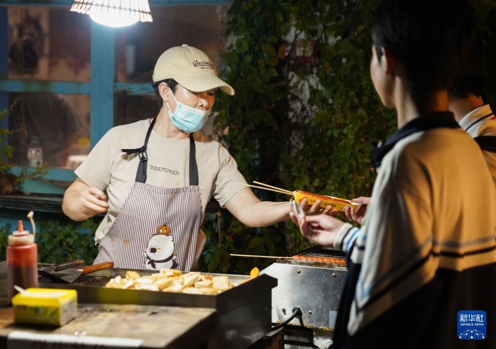 10月20日,游客在广西北海市合浦县的海丝首港景区购买小吃。