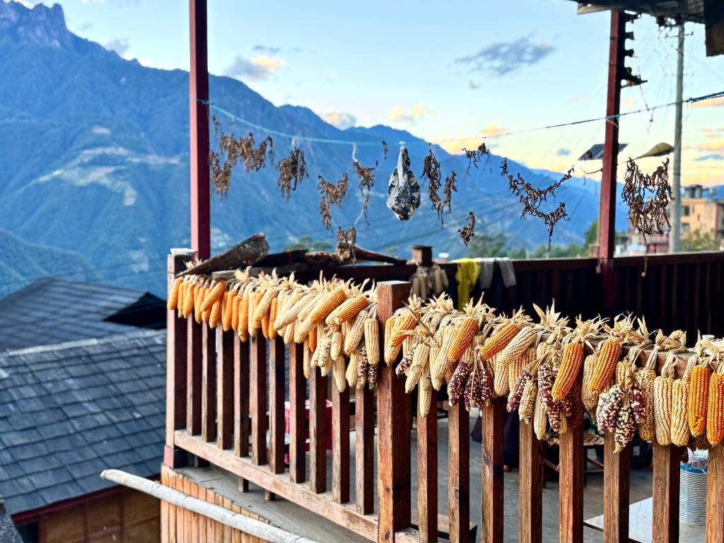 图为10月21日拍摄的云南省怒江傈僳族自治州福贡县匹河怒族乡老姆登村村民晾晒的玉米。新华社记者 胡了然 摄
