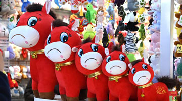 福州南后街沉浸式消费空间“国潮生活馆”里展示的一系列IP形象(1月9日摄)。