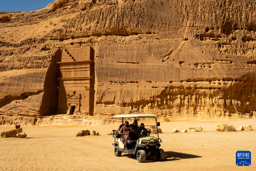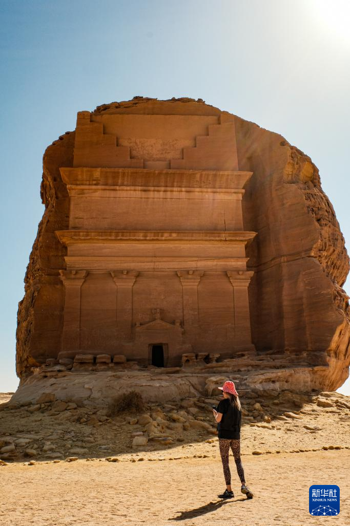 1月17日,游客在沙特阿拉伯欧拉游览石谷考古遗址。