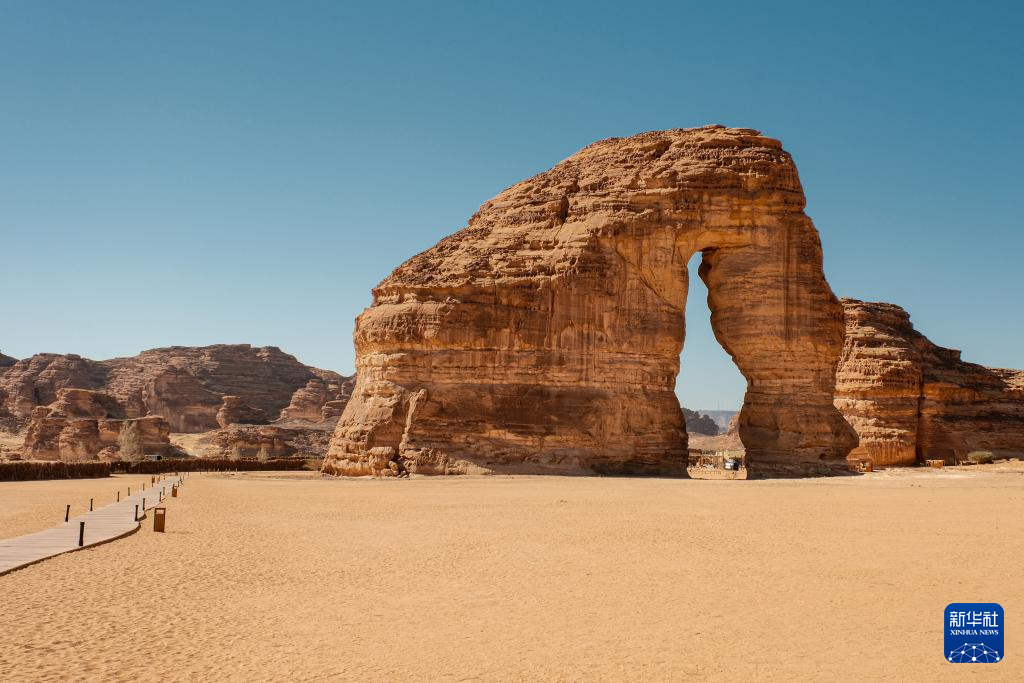 这是1月15日在沙特阿拉伯欧拉拍摄的象石遗址。