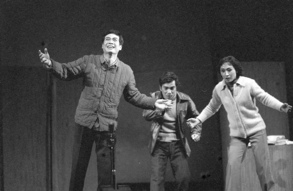 1980年6月,上海市工人文化宫业余话剧队演出话剧《屋外有热流》。该剧是“探索戏剧”代表作。新华社记者王辉 摄