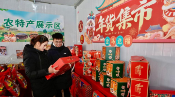 2月4日,在浙江省湖州市长兴县雉城街道古城公园,社区居民参与“马年套圈圈福气”趣味体验活动。