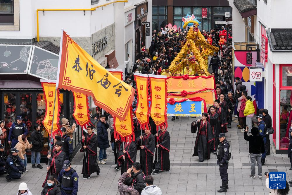 2月25日,梅村泰伯庙会在江苏省无锡市新吴区举行。据介绍,每年农历正月初九,无锡梅村都要举行泰伯庙会,纪念泰伯奔吴。本届庙会以“奔吴”为主题,融合民俗巡游、非遗展演、文化市集等,展现当地吴韵特色,吸引众多市民和游客前来观赏。