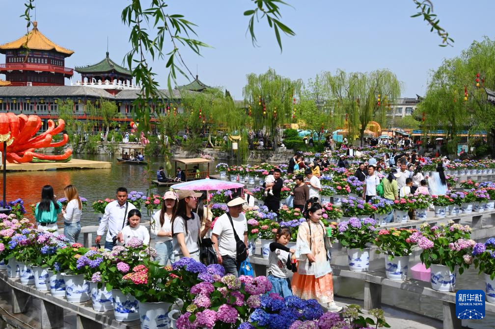 4月5日,游客在河北省石家庄市正定古城游玩。