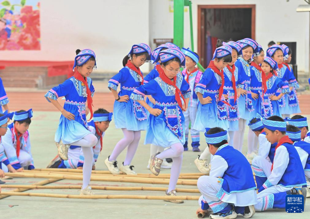 4月15日,广西梧州市长洲区龙平小学举行“石榴花开一家亲 同心喜迎‘三月三’”主题活动,师生们通过唱山歌、跳竹竿舞等丰富多彩的活动,喜迎传统节日“三月三”。