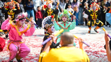 广西钦州:看戏击鼓 体验传统文化