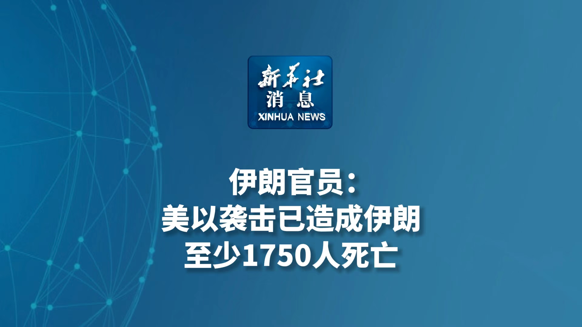 新华社消息丨伊朗官员:美以袭击已造成伊朗至少1750人死亡