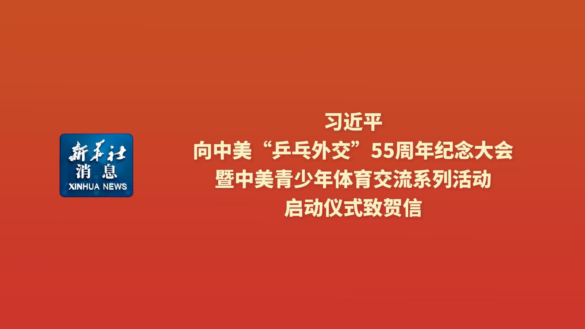 新华社消息丨习近平向中美“乒乓外交”55周年纪念大会暨中美青少年体育交流系列活动启动仪式致贺信