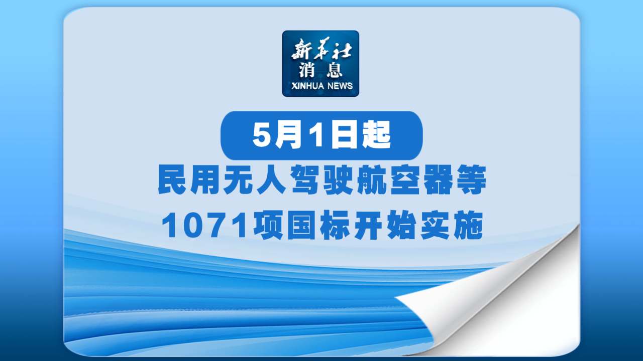 新华社消息丨5月1日起 民用无人驾驶航空器等1071项国标开始实施