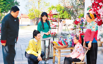 综艺《非遗里的中国·福建篇》中,嘉宾体验簪花。网络图片