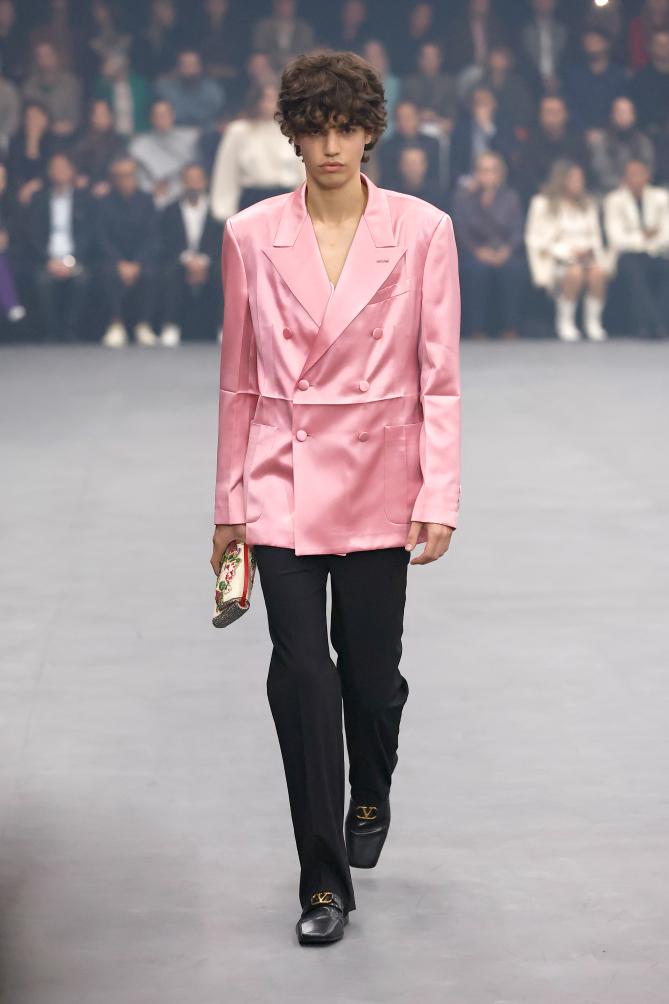 10月5日,模特在法国巴黎时装周上展示华伦天奴品牌2026春夏新品成衣。