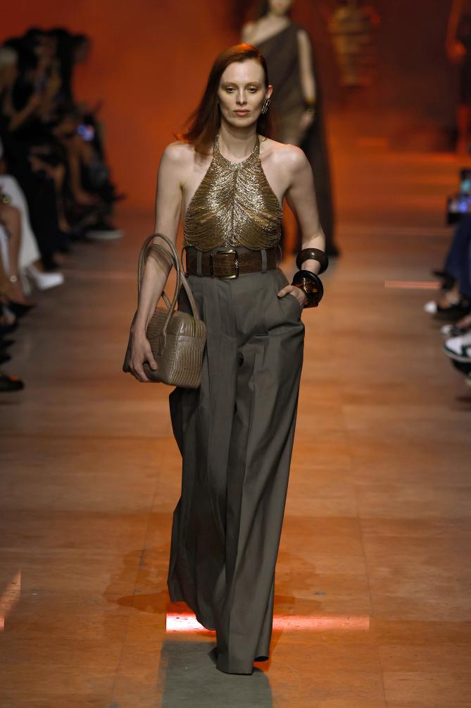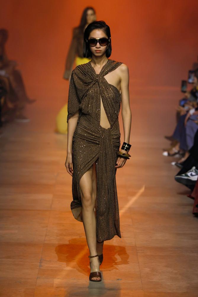 10月4日,模特在法国巴黎时装周上展示Elie Saab品牌的2026春夏新品成衣。