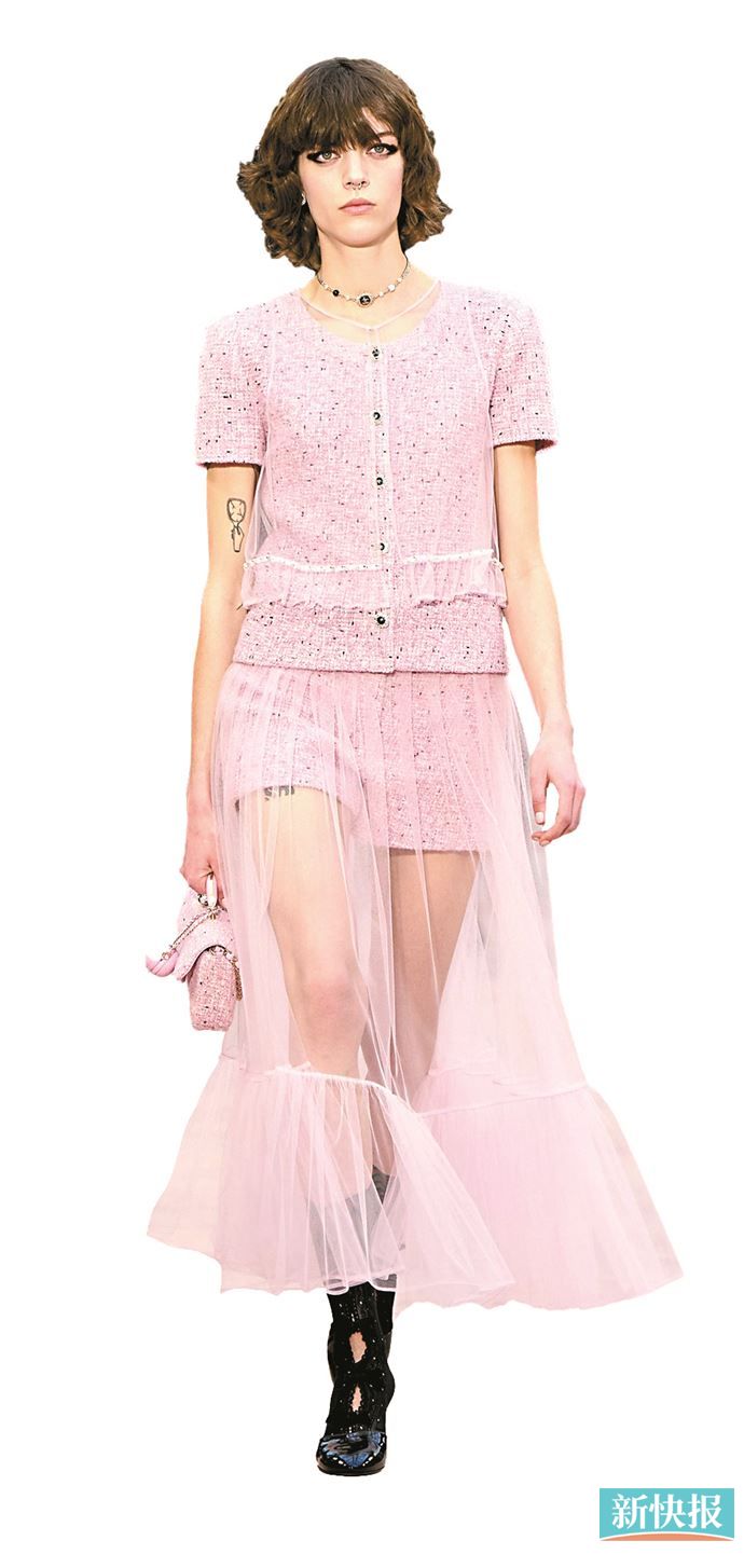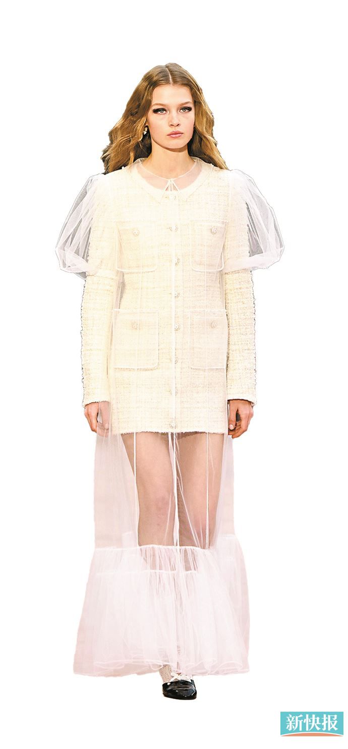 透视感较强的薄纱内搭可配大量感配饰,平衡整体造型感。
