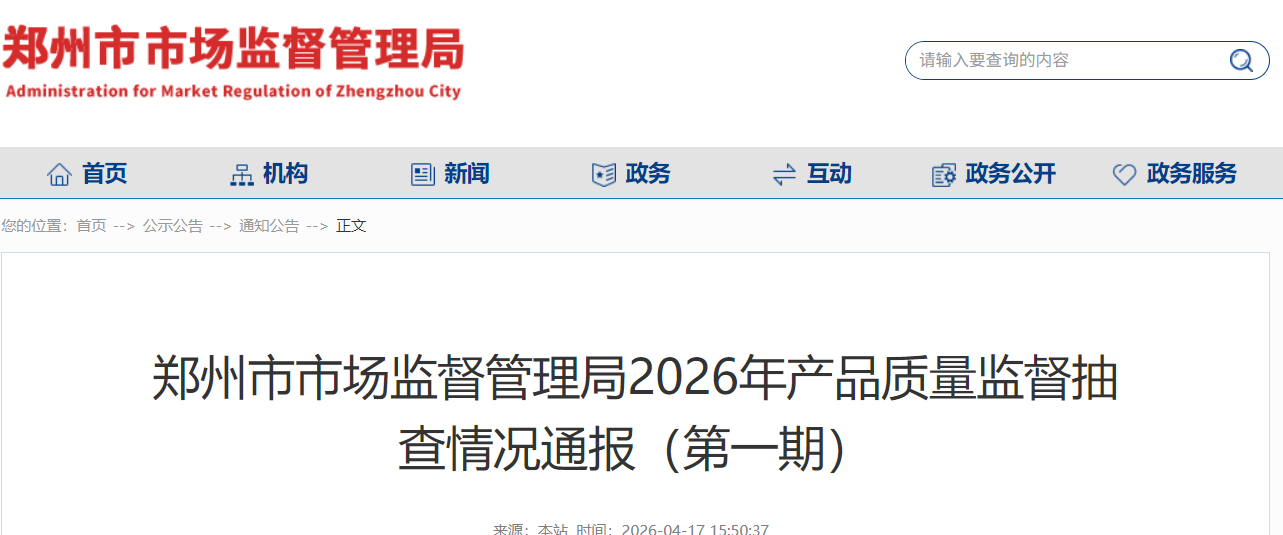 为切实保障产品质量安全,维护消费者合法权益,依据《中华人民共和国产品质量法》《产品质量监督抽查管理暂行办法》等法律法规,郑州市市场监督管理局按照年度工作计划在全市范围内组织开展了产品质量监督抽查。现将有关抽查情况通报如下: