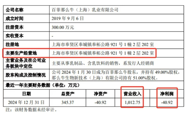 与百菲乳业21.02%的净利率不同,百菲那么牛2024年虽取得1012.75万元的营业收入,但净利润为-40.92万元。